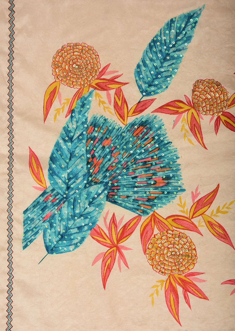 We bring to you a range of paintings that will elevate your decor. Beautiful exotic flowers are hand-painted on fabric with a quote hand embroidered.